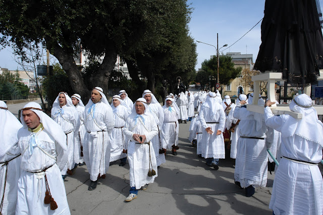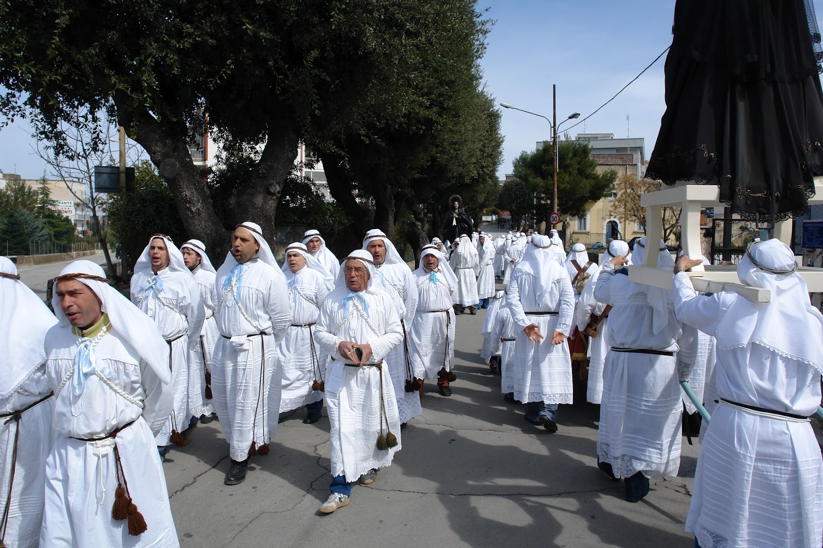La processione pomeridiana di tutte le confraternite e del popolo: alle ore 18.30, in un unico corteo aperto dalla Congregazione di San Pietro, le confraternite e il popolo portano in cerimonia il fercolo dell’Addolorata della Chiesa Matrice e il Cristo Morto della Confraternita dei Cinturati di Sant’Agostino e Santa Monica che chiude la processione. Intonando in modo separato il Miserere si giunge sino alla zona che simboleggia il Golgota, posta alla punta estrema del quartiere Carmine, al “Calvario” dove 5 croci simboleggiano le altrettante piaghe di Gesù, fino a trovare il Cristo morto sulla Croce. Per ogni croce il prete intona tre Pater e Ave e tre Gloria, intonando i versi “ Io ti adoro Santa Croce, duro legno del mio Signore, io ti adoro con la voce, io ti adoro Santa Croce”, dopo l’ultima croce le confraternite e il popolo intonano “l’Evviva la Croce” che accompagna tutto il ritorno del corteo.